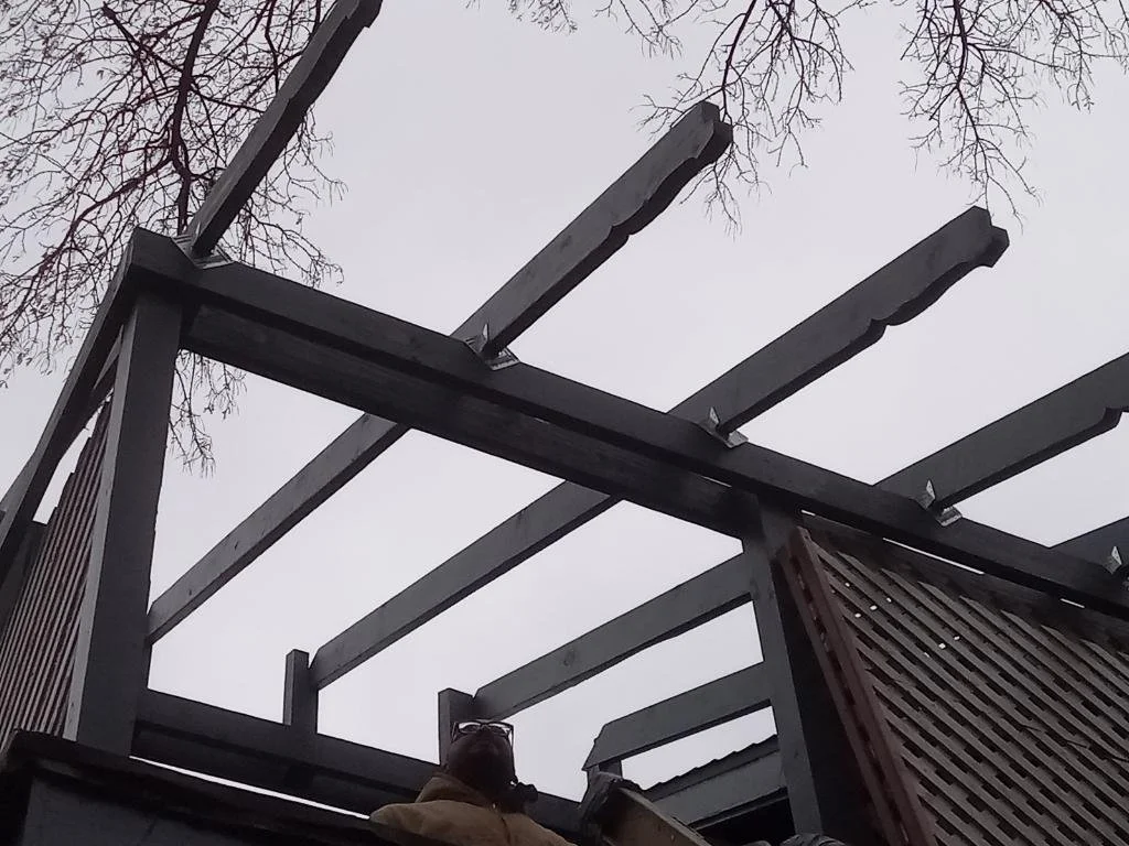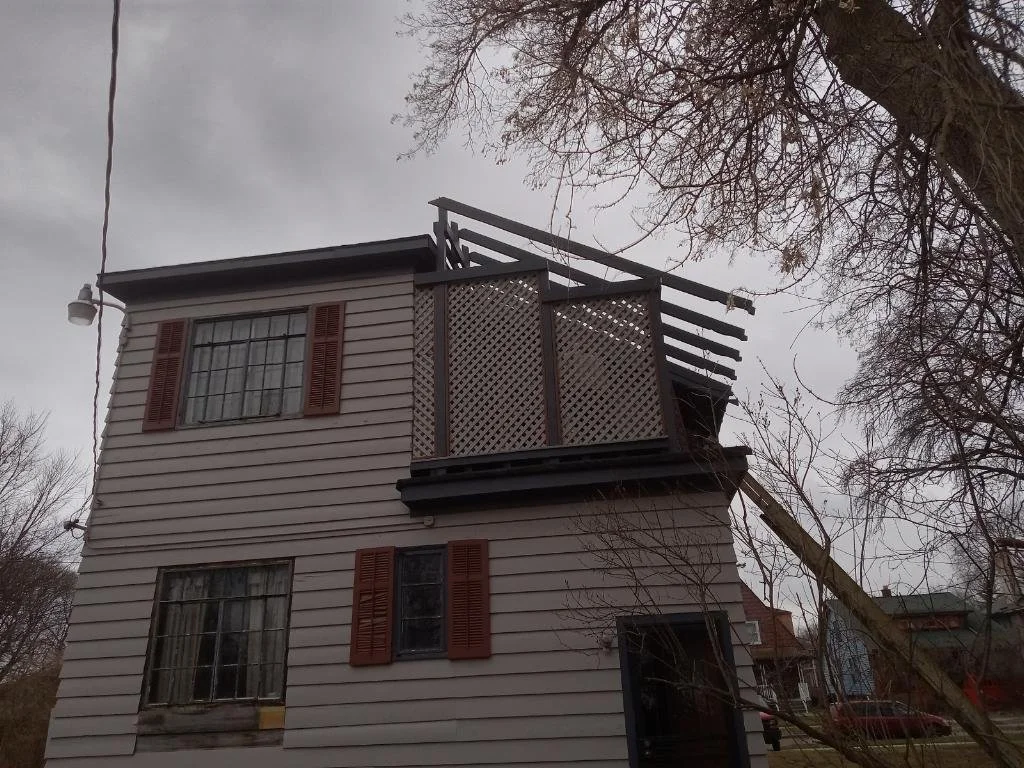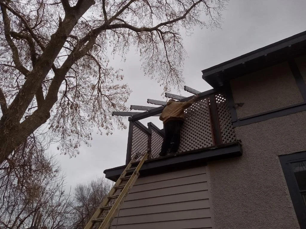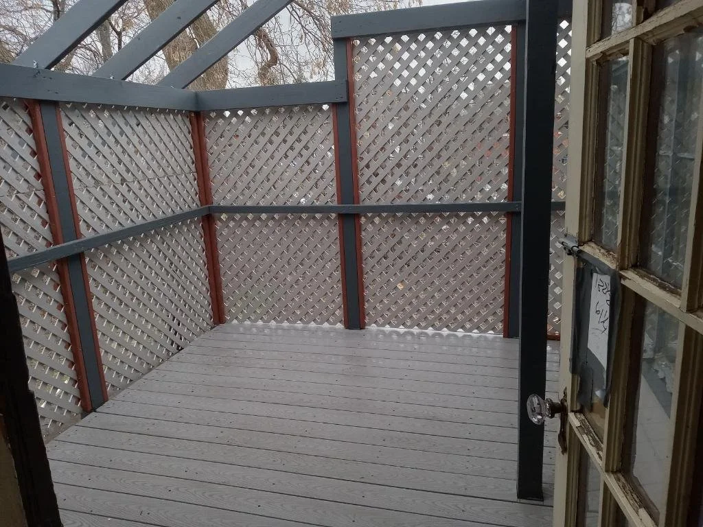 Second Floor Porch – The owner of a unique Craftsman Style home asked Jay to design a replacement of the second floor porch at the rear of his home. Because the porch sat on the kitchen roof below it, the porch floor’s structural elements had to be on sleepers and installed to ensure the joists followed the slope of the roof, but were level for the floor. The enclosed porch needed overhead, horizontal rafters in order to ensure its outside walls were structurally sound. Jay’s designed followed the adjacent roof line and the ends of the rafters that extended beyond the porch wall were patterned to match the existing home’s existing rafter tails. Finally, the color scheme and ratios of the trellis walls and vertical structure mimic the post-and-beam design of the home’s stucco and beam design.